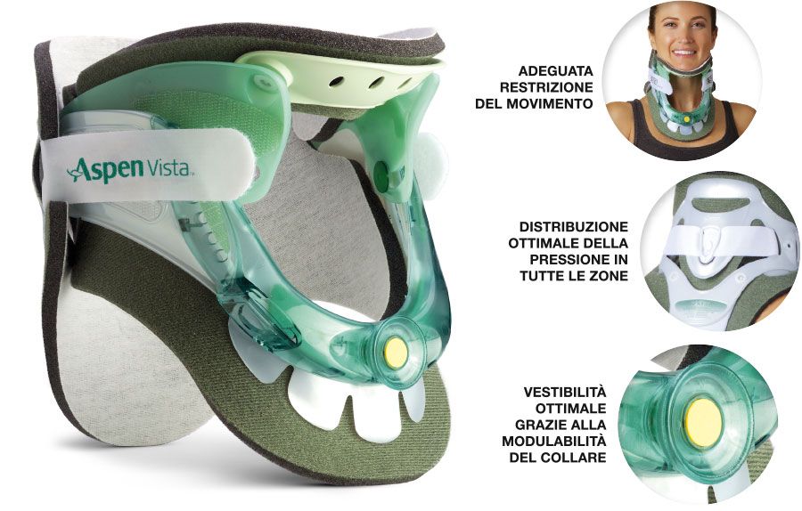 È così, sul mercato sono presenti numerosi collari cervicali. D’altro canto Aspen® ha una storia e un’esperienza uniche in termini di sviluppo e conoscenza di questi tutori specifici per il lungo termine. I collari cervicali Aspen® e Aspen® Vista sono i più utilizzati dai medici proprio per le loro particolari caratteristiche distintive, che sono l’adeguata restrizione del movimento, la distribuzione ottimale della pressione per limitare l’insorgenza di ulcere e la vestibilità ottimale.